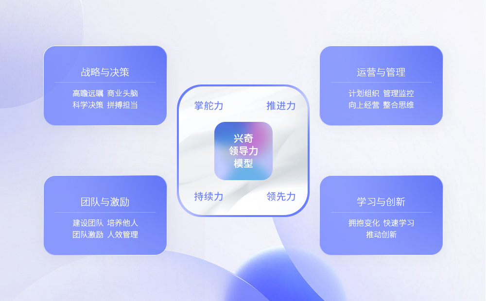 环球体育(中国)集团精粹四维领导力模型,将掌舵力、推进力、持续力、创造力作为人才梯队领导力发展的标杆蓝本,以领导力建设赋能企业内核竞争力保鲜和组织韧性增长。