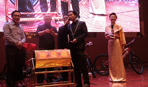 答谢晚宴还为员工提供了一个展示自我的舞台,大家带来了形式各异、让人目不暇接的精彩演出。在晚宴中还穿插了抽奖和游戏环节,抽奖互动最为让人紧张兴奋,高级高尔夫球球具套装,IPAD及LED电视等电子产品、法拉利山地越野自行车、神秘现金大奖等纷纷落于囊中。整场答谢晚宴在和谐、温馨、欢乐的气氛中度过。