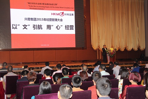 会议当天,集团财务部、资金部、人力资源部分别就各自职能部门2014年经营管理工作及2015年重点工作规划进行了介绍,期货部分析师还对未来一年经济环境、有色金属走势进行了分析,阐述了未来新常态下市场发展情况。执行董事陈湛枝、陈贺枝分别汇报了业务板块2014年经营管理情况和2015年经营管理重点工作。