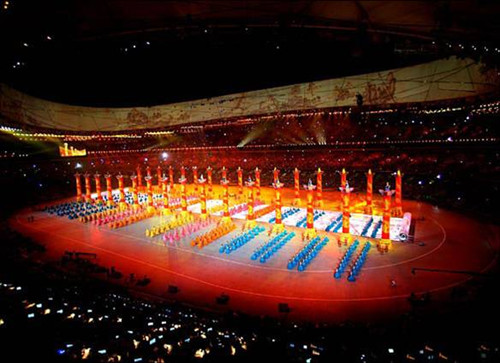 百年奥运梦,今夜终成真。2008年8月8日晚,举世瞩目的北京第二十九届奥林匹克运动会开幕式在国家体育场隆重举行。 国家主席胡锦涛出席开幕式并宣布本届奥运会开幕。具有两千多年历史的奥林匹克运动与五千多年传承的灿烂中华文化交相辉映,共同谱写人类文明气势恢弘的新篇章。