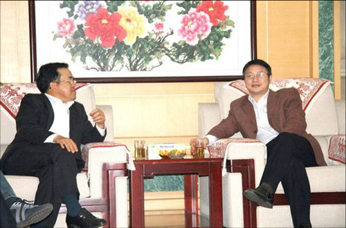 环球体育(中国)集团总裁陈传奇先生与江西铜业集团总会计师甘成久先生热情交谈