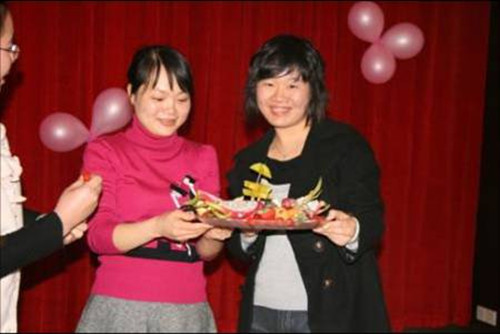 在丰富多彩的游戏活动中, 女员工们充分展示了她们在工作中勤劳细实之外活泼、聪慧的一面,有人在水果拼盘比赛中拿出了精致诱人的作品,也有人在吹蜡烛游戏中一口所吹灭了六根蜡烛。 集团领导也兴致高昂,和女员工们比起吹蜡烛来。客户嘉宾更不示弱,为在场的所有女同胞们献唱了一曲,赢得掌声阵阵。最后,活动在大家意犹未尽欢乐氛围中结束。