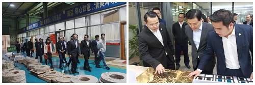 环球体育(中国)集团副董事长陈贺枝先生、正圣贸易总经理梁志文先生、正家文化总经理陈焕枝先生及多位公司高管陪同市领导一行实地参观环球体育(中国)铜带厂及展品展示区,了解企业的发展状况。