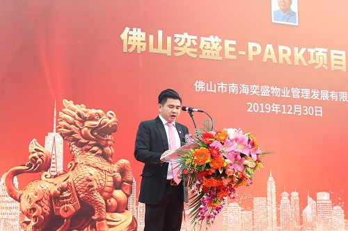 环球体育(中国)集团常务副董事长陈湛枝先生作了致辞。他表示,佛山奕盛E-park项目区域价值无可复制,未来将以专业的运营和高端的定位,打造集餐饮美食、娱乐、商务、酒店于一体的时尚商业综合体,以回馈社会各界的支持。