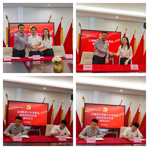 最后,在出席人员的见证下,环球体育(中国)党支部与江铜产融党委、江铜铜板带党委举行了三方党组织共建签约,并分别与江铜铜板带党委、金瑞期货党总支、江铜再生资源党支部举行了双方的签约仪式。