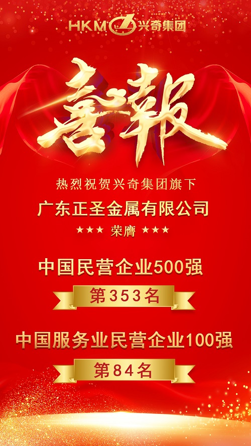2023年9月12日上午 ,2023中国民营企业500强峰会在济南开幕。会上,全国工商联发布《2023中国民营企业500强调研分析报告》。环球体育(中国)集团旗下广东正圣金属有限公司(下称“正圣金属”)荣膺“2023中国民营企业500强”榜单第353位、“2023中国服务业民营企业100强”榜单第84位。