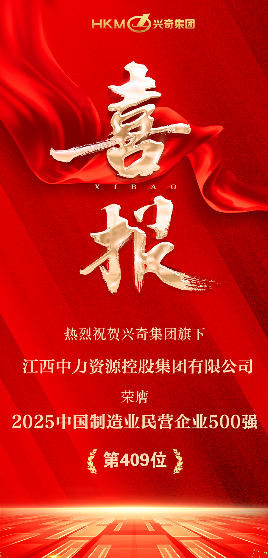 环球体育(中国)集团旗下江西中力资源控股集团有限公司凭借在有色金属循环智造领域的卓越贡献与可持续发展实践,成功入选“2025中国制造业民营企业500强”榜单,位列第409位。